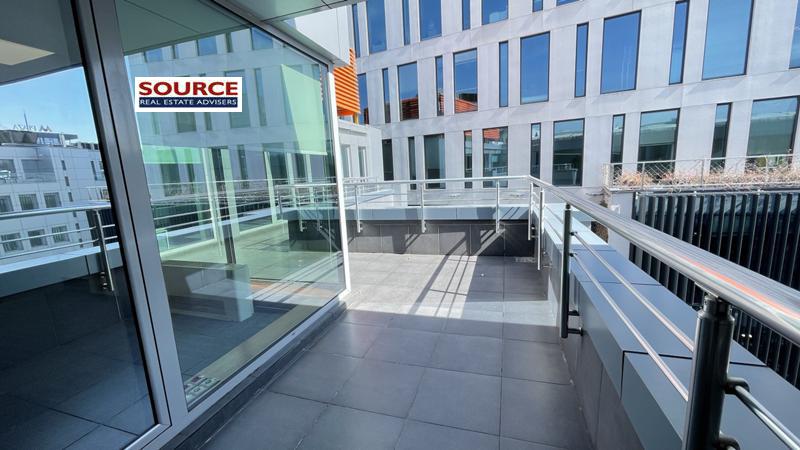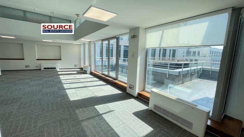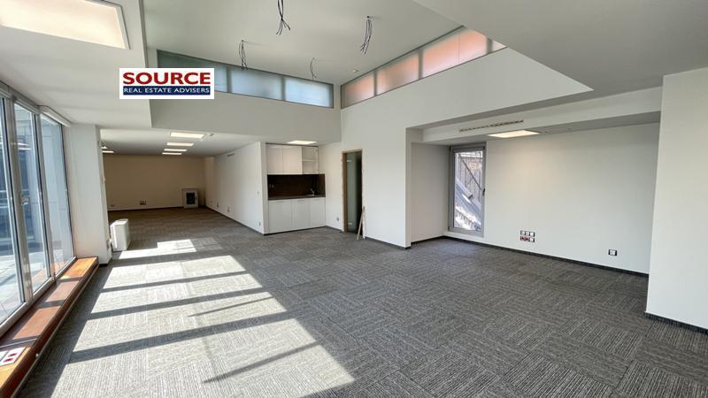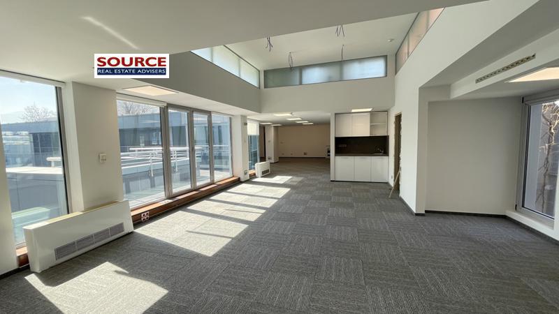 2. Разпределение: 1 голямо Open space помещение, оборудван кухненски бокс, рецепция, 2 wc, тераса. Офисът може да бъде изцяло с Open space разпределение или допълнително преграден според изискванията на Наемателя.