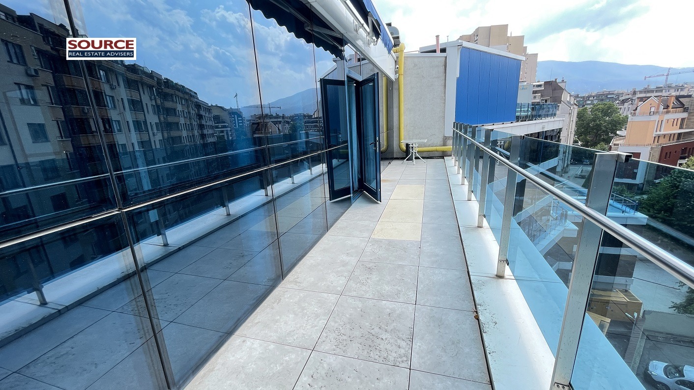 2. Разпределение: 2 големи Open space помещения, 13 отделни работни помещения преградени със стъклени и гипсокартонени преградни стени, зала за почивка, представителна рецепция, сървърно помещение, 5 wc, тераса. Офисът може да бъде изцяло с Open space разпределение или допълнително преграден според изискванията на Наемателя.
