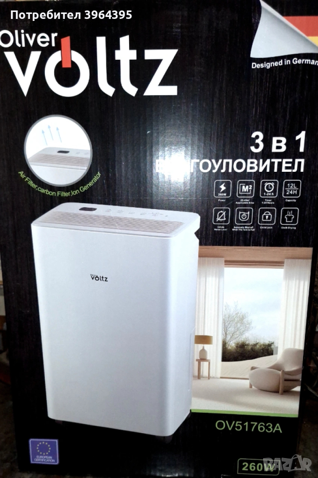 Влагоуловител, пречиствател на въздух и йонизатор Оливър Волтц 12ка → Обява 53908267