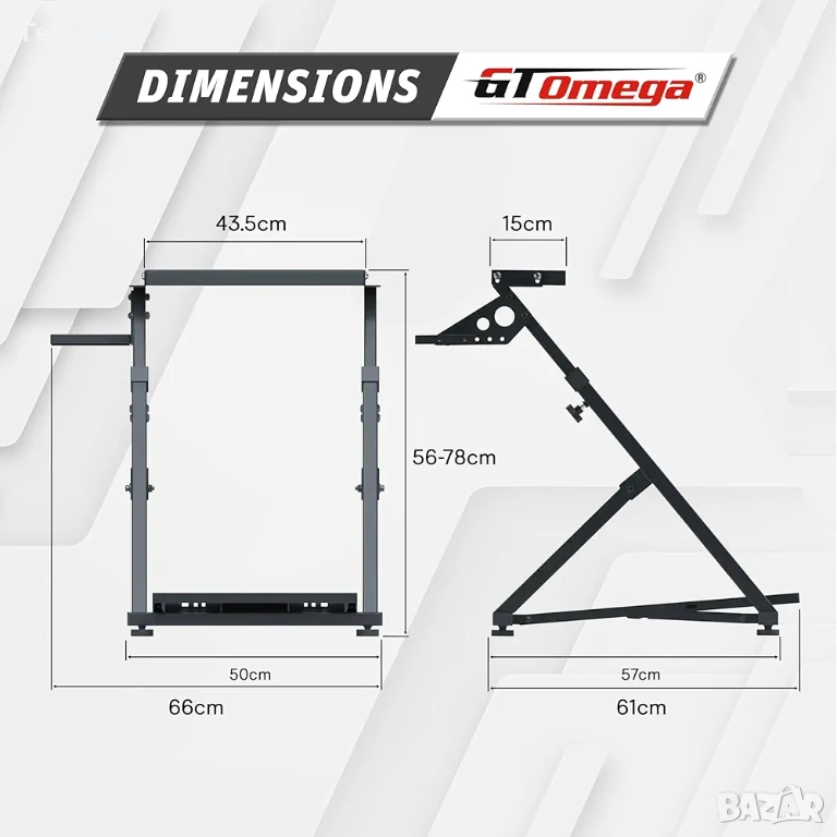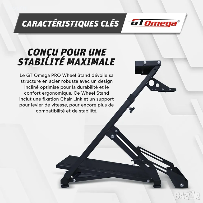 GT Omega предлага чудесно решение за ентусиастите на състезателните игри, позволявайки монтиране на волан, педали и преобличане на ергономична състезателна станция. Сега можете да се насладите на най-доброто игрово изживяване благодарение на GT Omega Racing, без да правите компромис с пространството в стаята си. Стойката се сгъва бързо и се сгъва до изненадващо малки размери, за да се побере лесно в ограничени пространства в дома или гардероба.