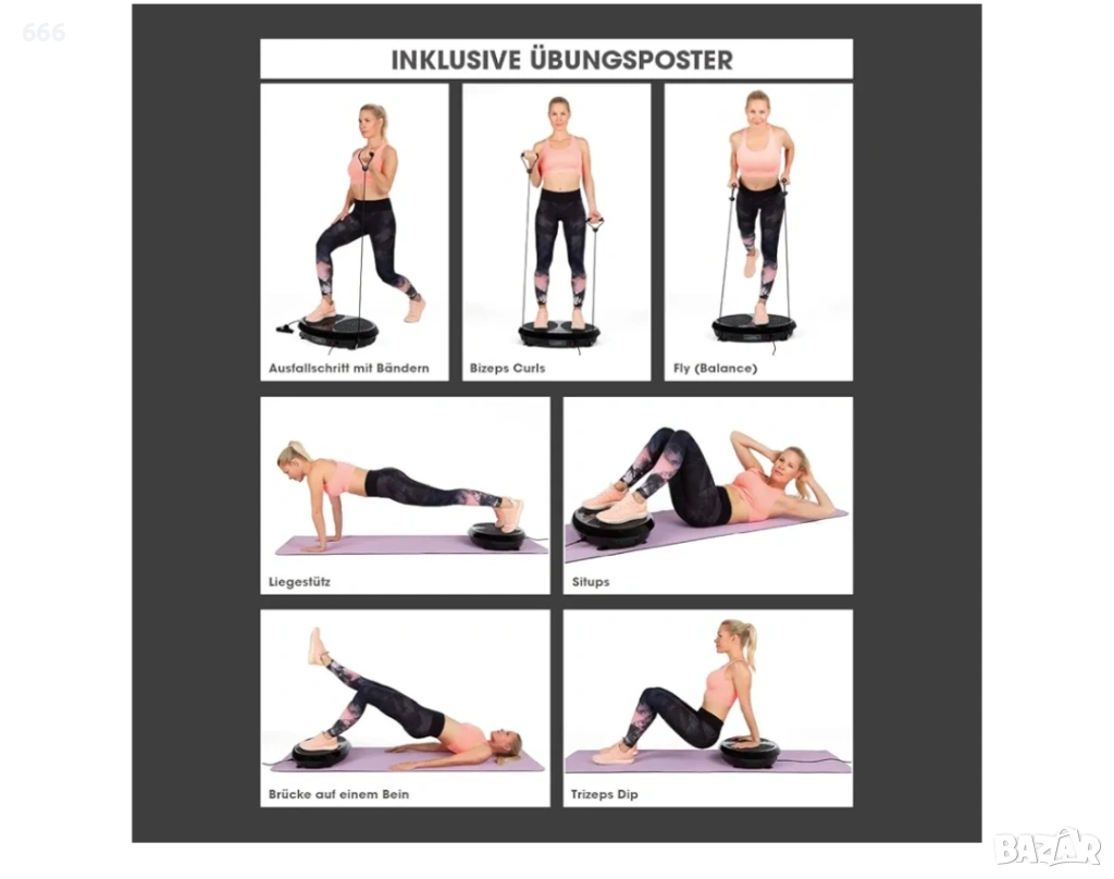 3 в 1: Тренира гъвкавост, координация и баланс. Забравете претъпканите и задушни фитнес зали и тренирайте лесно у дома! Вибрационният тренажор Vitalmaxx ви държи „в момента“ и изисква гъвкавост, координация и баланс от тялото ви. Просто включете и започнете - с 10 предварително зададени програми, има правилната тренировка за почти всяко ниво на физическа подготовка. Стабилната вибрираща плоча осигурява неплъзгащо се захващане за различни упражнения със и без експандери - идеални за целенасочено трениране на всички мускулни групи. 99 индивидуално регулируеми настройки на скоростта за всяка тренировка, правилната сила на вибрациите и благодарение на LED дисплея, винаги следите времето и скоростта на тренировката. Вибрационният тренажор Vitalmaxx може лесно да се управлява с дистанционно управление - за оптимална лекота на използване. Започнете своя собствена фитнес програма сега!