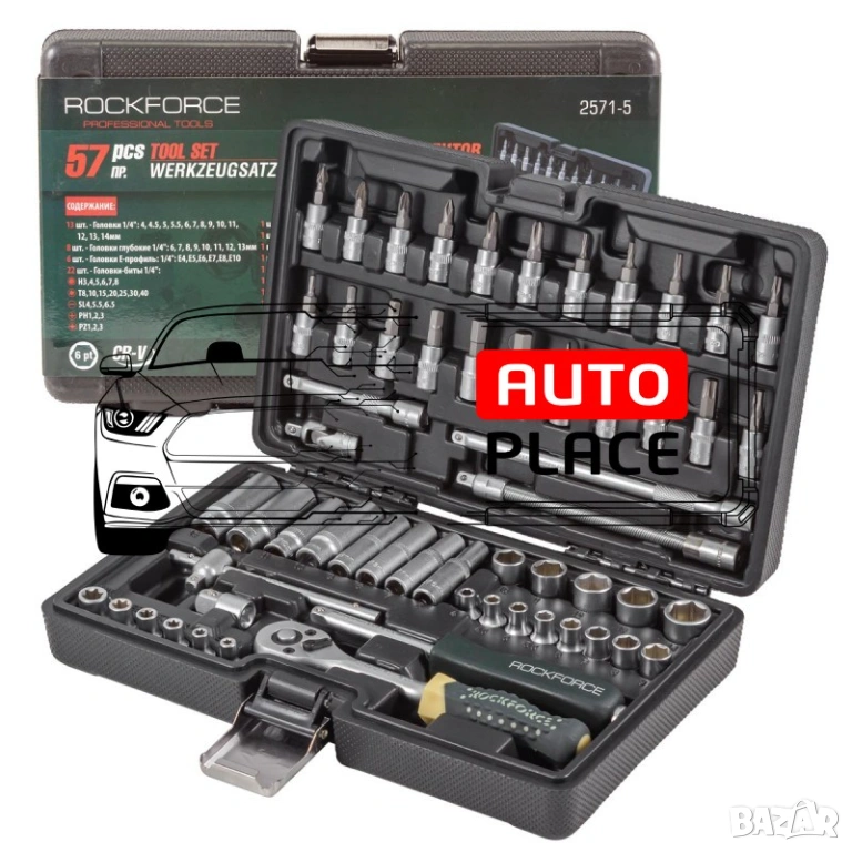 Гедоре 1/4″ шестостенно 57 части RockForce