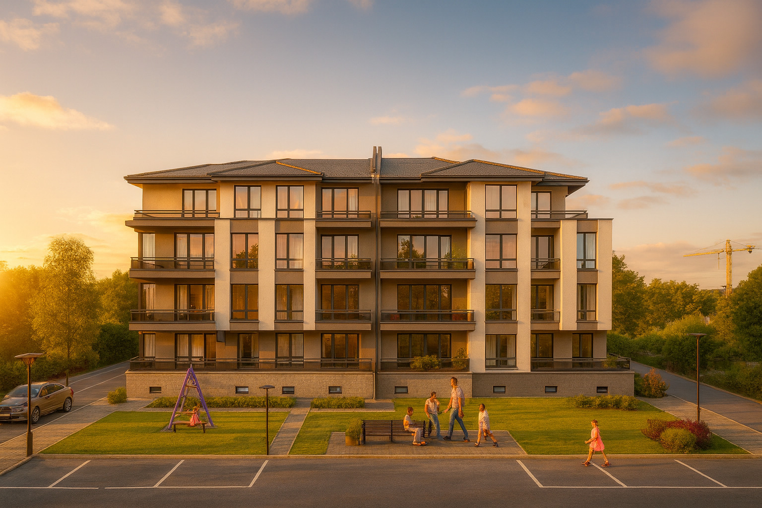 Комплексът се състои от 4 сгради по 4 етажа с ограничен брой апартаменти, зони за отдих и детска площадка отличен избор за семейно живеене.