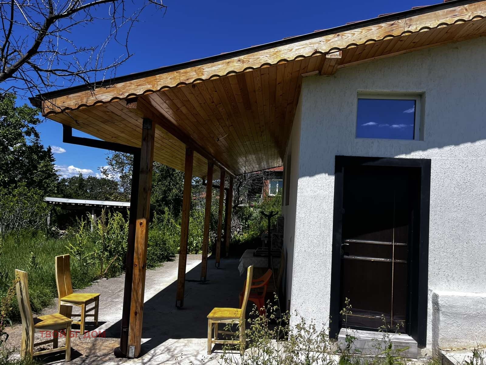 Предлагаме за продажба едноетажна къща, изградена преди около 10 години на мястото на стара такава. Застроена площ 74 кв.м., плюс голяма веранда с площ от 40 кв.м. Къщата се състои от приятна трапезария и кухня, спалня и баня с тоалетна, както и от външната веранда, която може да се остъкли.