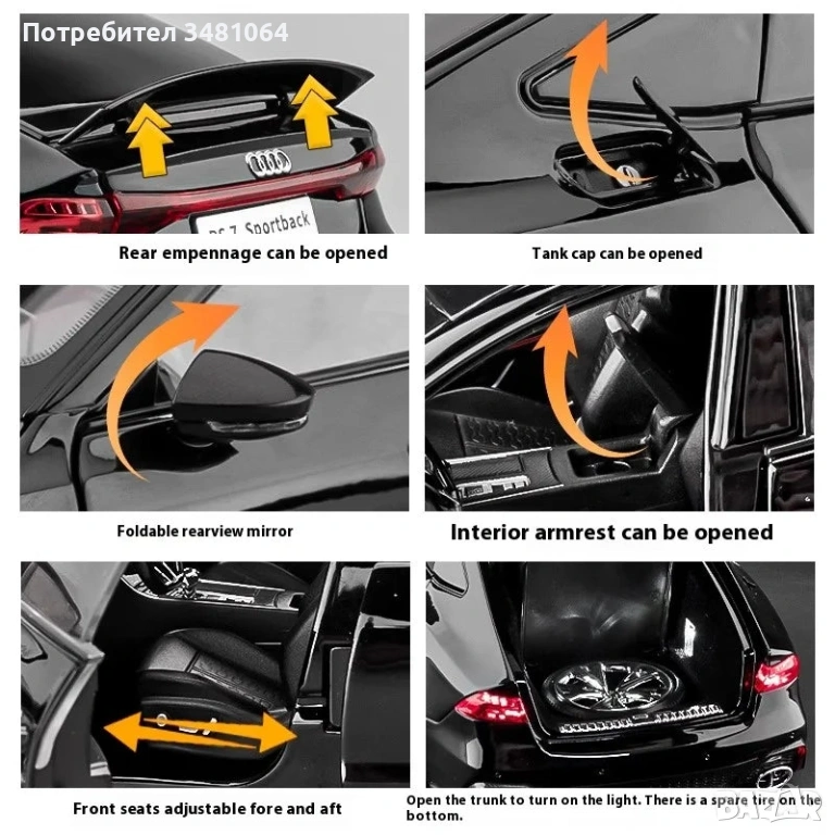 6 отварящи се елемента: Врати, капак и багажник, които се отварят плавно и стабилно.