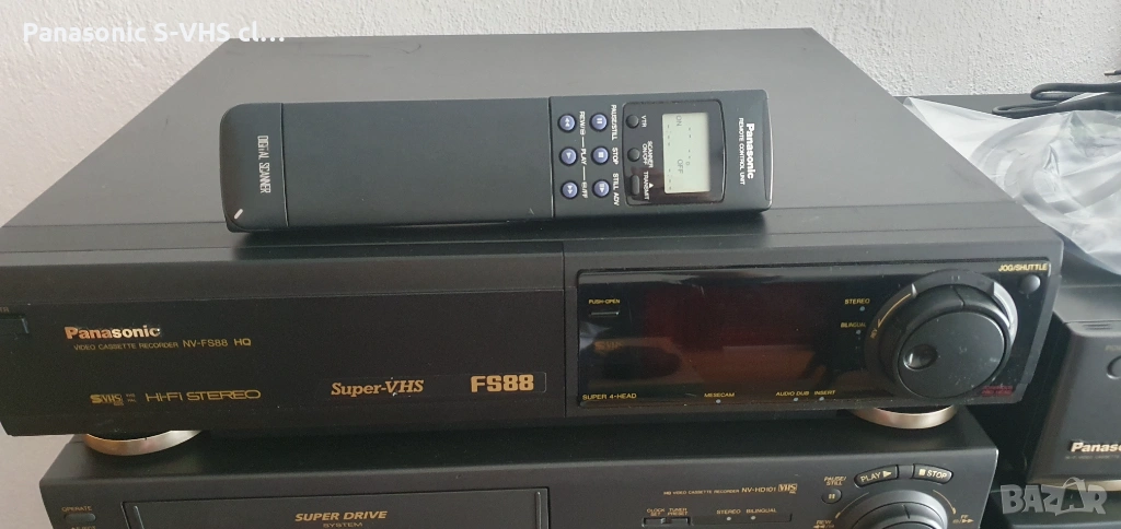 Здравейте! Продавам видео рекордер S-VHS Panasonic NV-FS88 Hi-Fi stereo с дистанционно управление .Машинката е в много добро състояние.Ярък дисплей,добре работеща механика и електроника.Технически перфектен.Външен вид добър .Има си следи от употреба без удари ,драно и наранено.Пускам снимки и видеоклип ,а за повече технически данни може всеки да провери в интернет.Цената е 225 евро.Намира се в град Пловдив.Изпращам с куриер за сметка на купвача с преглед и тест.Продажбата е частна на електроника втора употреба и не е включена гаранция.За въпроси и поръчки отговарям на лични съобщения тук в платформата.