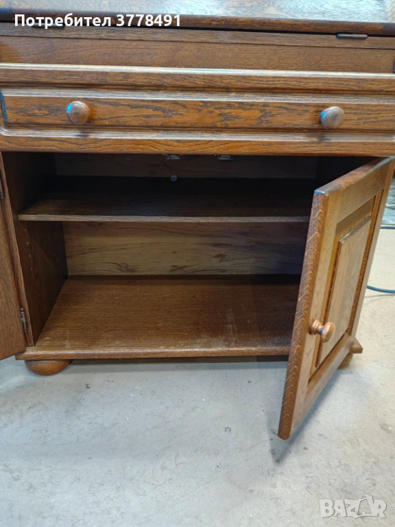 Старо дървено писалище с чекмедже и врати. Изработено от качествен дъбов материал, с красив дизайн. Подходящ за домашен офис или за съхранение на документи и канцеларски материали. Внос от Нидерландия