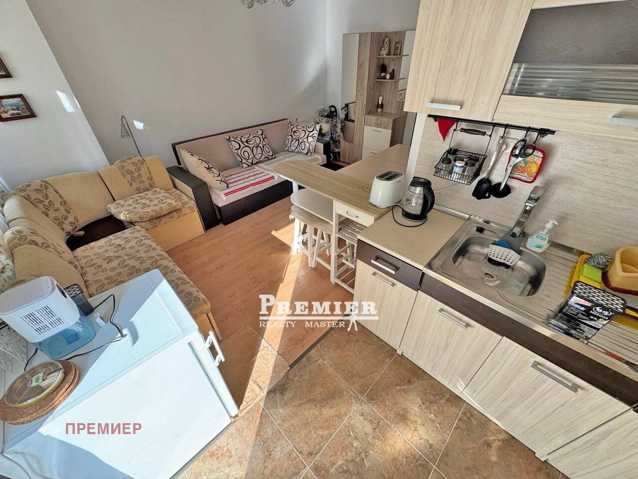 Предлага се за продажба уютно студио в модерен жилищен комплекс, разположен на популярния курорт Слънчев бряг. Апартаментът се намира на 1-вия етаж, общата площ е 36 м². Напълно обзаведен. Апартаментът е подходящ както за летни почивки, така и за отдаване под наем. Това е добре поддържан жилищен комплекс с облагородена територия и приятна атмосфера за отдих и живеене. За живущите са предвидени: открит басейн, зелени и поддържани площи, контрол на достъпа. Комплексът се намира в спокойната част на Слънчев бряг, на удобно разстояние до цялата инфраструктура на курорта наоколо има магазини, кафенета, ресторанти и спирки на обществения транспорт. До плажа се стига само за няколко минути. Отличен вариант за отдих, инвестиция или отдаване под наем. Без комисионна за купувача!