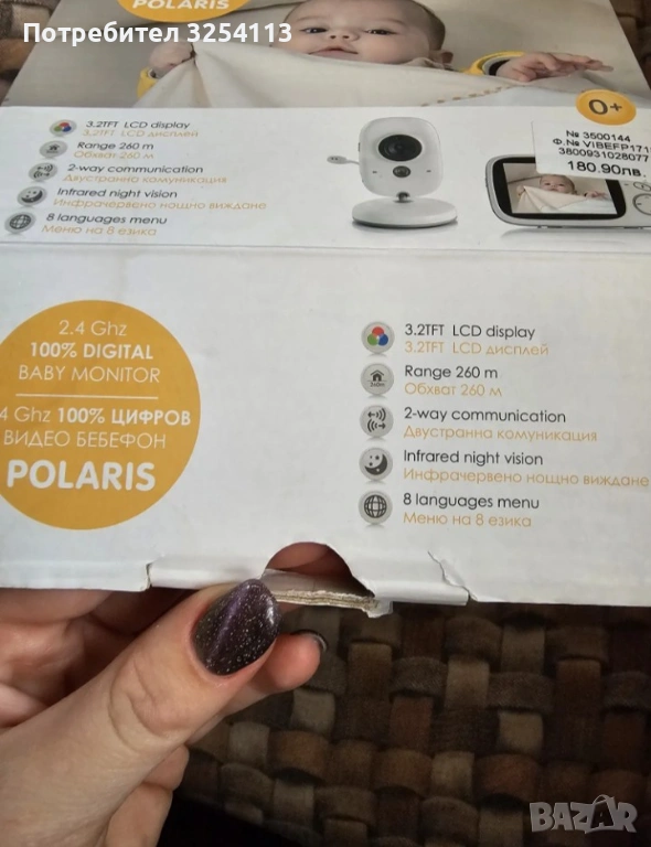 Бебефона предава отлична картина . В пълен комплект с родителско устройство , камера и зарядни за тях , само кутията липсва . Изпращам го с преглед и тест , а за град Варна , може и лично предаване .