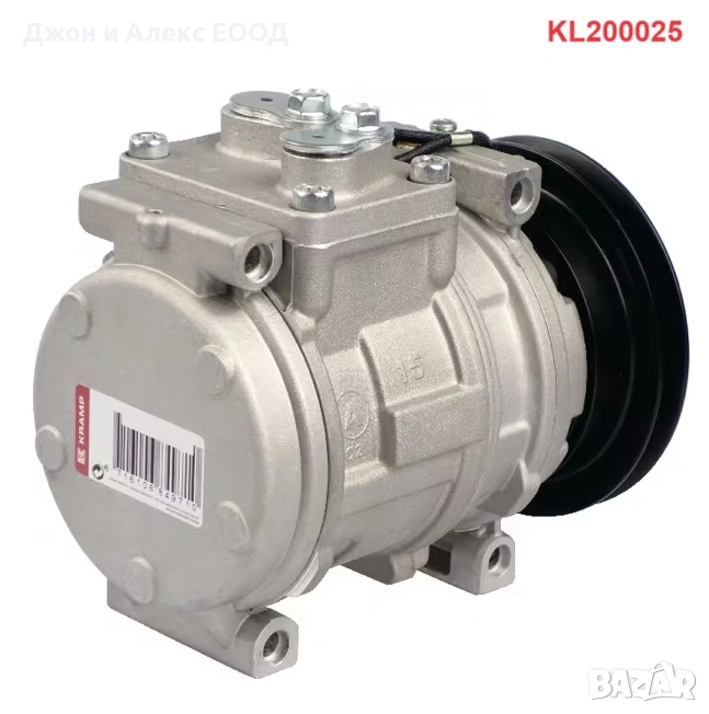Kramp KL200028 (Airco Compressor)– 12V, Тип: 10PA17C, Ø 146 mm, Шайба: Poly-V 8 (8-канален), Масло: 322 cm³, EAN: 8716106849703.Подходящ за: John Deere 4560, 4755, 4760, 4955, 4960, 5083E, 5085M, 5090E, 5093E, 5095M, 5101E, 5105M, 5210, 5310, 5320N, 5325N, 5410, 5420, 5425, 5510, 5520, 5525, 5603, 5625, 5725, 6100D, 6110D, 6115D, 6125D, 6130D, 6140D, 6403, 6603, 7200, 7210, 7400, 7410, 7510, 7600, 7610, 7630, 7700, 7710, 7720, 7730, 7800, 7810, 7815, 7820, 7830, 7920, 7930, 8100-8410 (всички T/R серии), 8520/T, 8530, 8570-8970, 9100-9630 (всички T серии).
