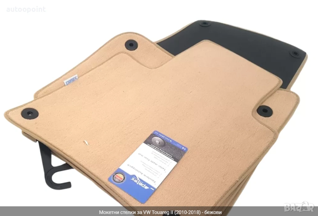 Мокетните стелки Petex осигуряват отлична защита на пода на автомобила и придават стилен вид на интериора. Изработени от качествен автомобилен мокет, те задържат прах, кал и влага, като същевременно са устойчиви на износване и лесни за почистване.