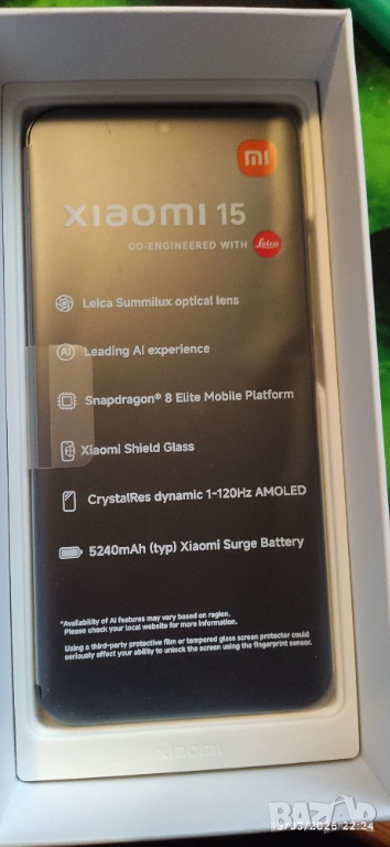 Продава се флагмански телефон Xiaomi 15 с 12GB RAM и 512GB вътрешна памет. Смартфонът поддържа 5G връзка и е в черен цвят. Нов, неразопакован. Телефона е чисто нов закупен на 13/03/2026 от Виваком с 2 години пълна гаранция.