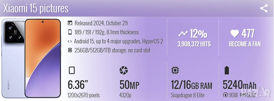 Xiaomi 15 12GB RAM 512GB 5G Черен