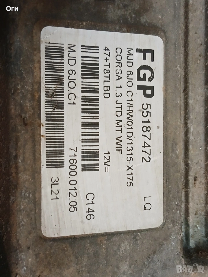 Компютър за Опел Корса С 1.3 JTD 55187472 → Обява 53910485