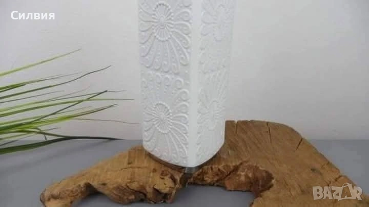 Бял бисквит порцелан с грапава текстура на красиви фигури (мандала).