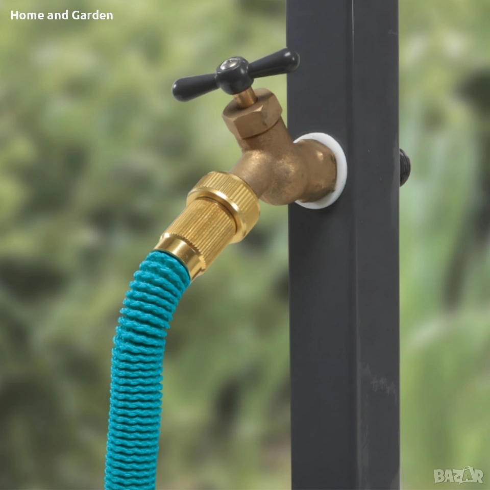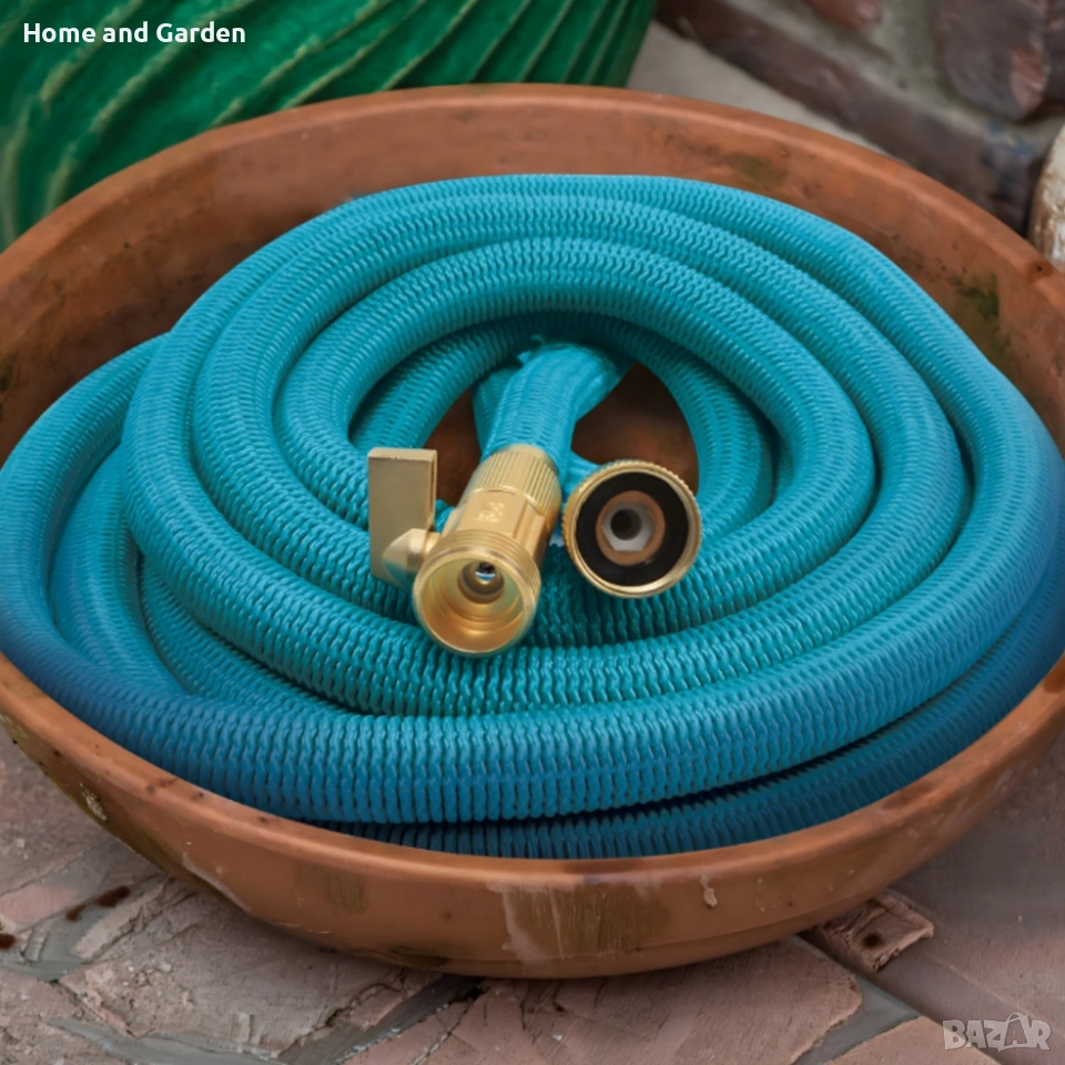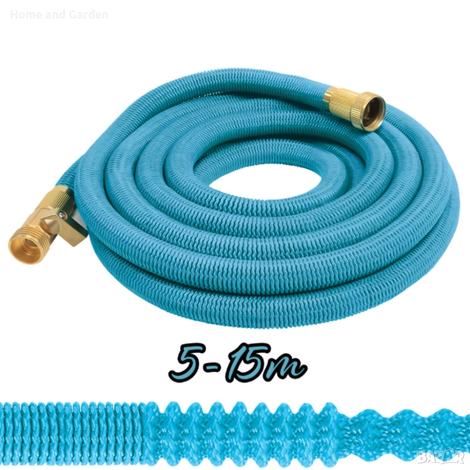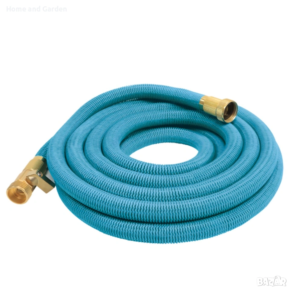 Разтегателен маркуч с медни накрайници и алуминиев конектор. Не се заплита и не се прегъва. Външна обвивка от здрав полиестер 3750D. Подходящ за поливане, миене на автомобили и почистване на дворове.