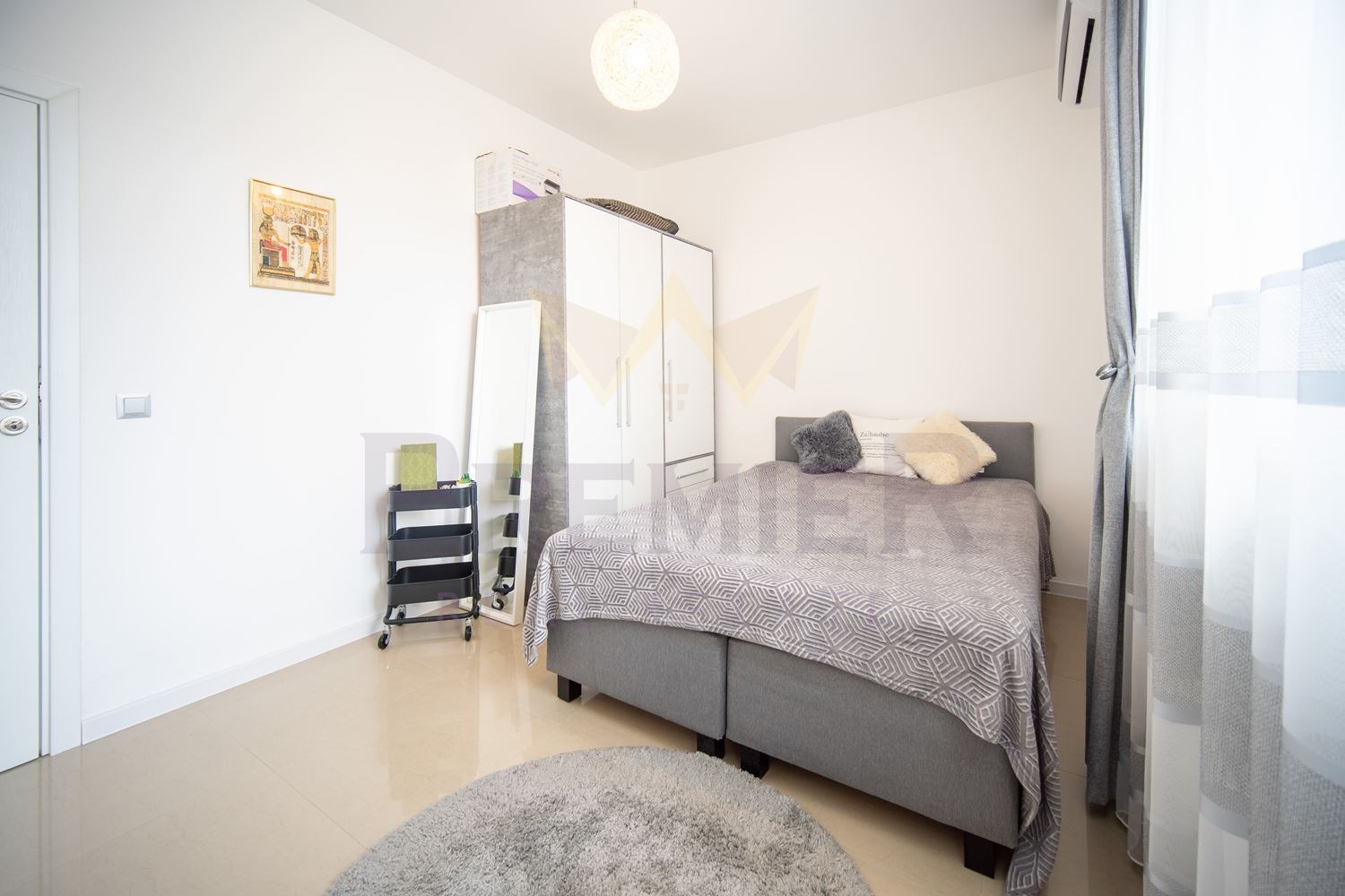 Имотът разполага с просторна дневна с кухня в едно помещение, тоалетна и веранда на първия етаж, а на втория две спални, баня с тоалетна и тераса с гледка към зелените площи на комплекса. Къщата се продава изцяло обзаведена и е готова за нанасяне веднага.