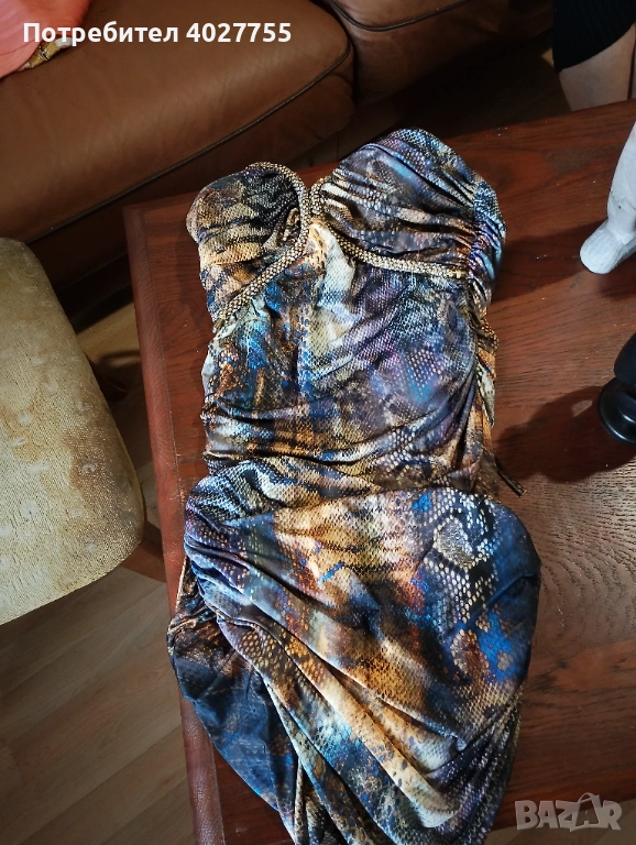 Къса рокля със змийски принт, цветна с камъни. Чисто нова, необичайна, без етикет