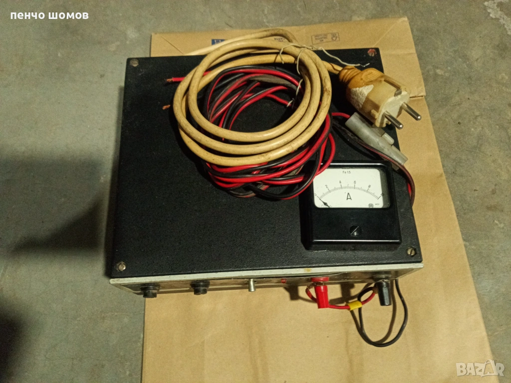 Предлагам 2 токоизправителя произведени в България миналия век. Единият е реализиран с германиеви а другия със силициеви транзистори. Изходния ток е до 5 ампера-прав а напрежението от 11.5-15 волта. Допълнително съм монтирал амперметри/скала до 10А/ и кабели с щипки за зареждане на автомоб. акумулатори. Работят безупречно и стабилно.