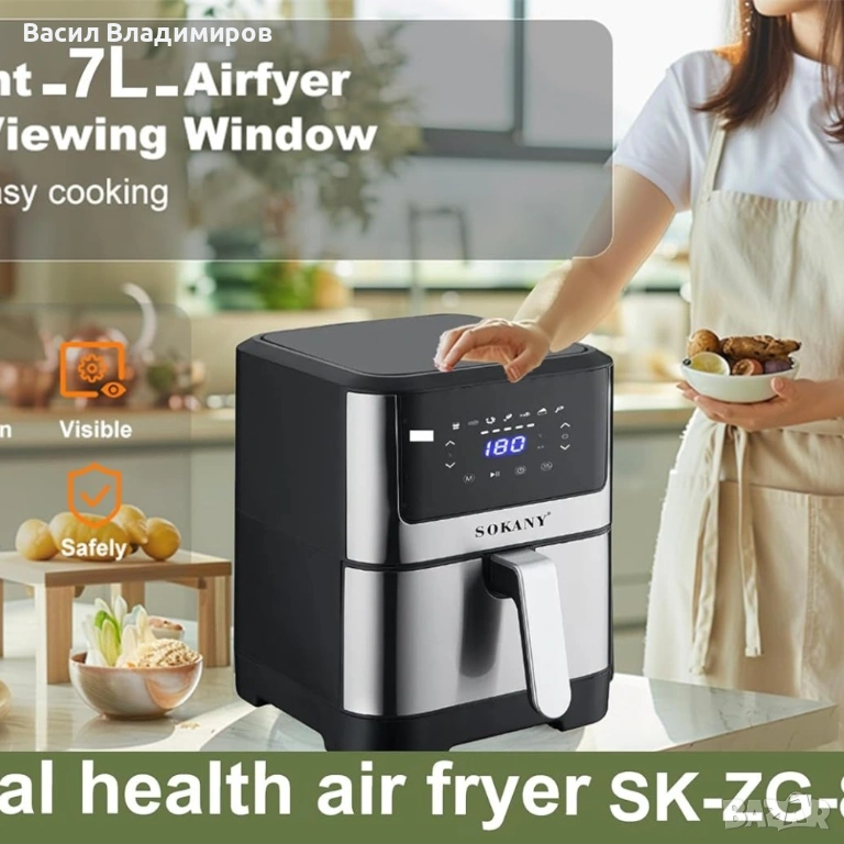 SOKANY SK-ZG-8040 Air Fryer – дигитален еър фрайър 7L, 1800W