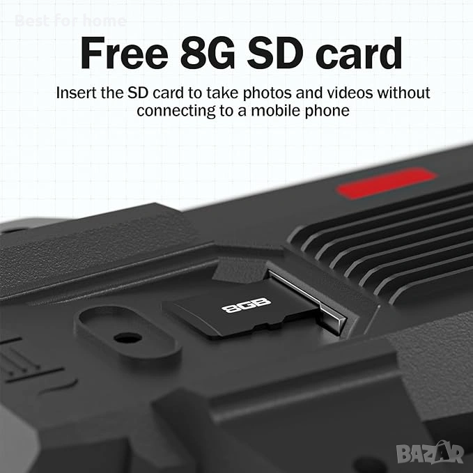 SD карта: Дистанционното управление на дрона ви позволява да правите снимки или да записвате видеоклипове директно; всички данни за изображението се съхраняват незабавно на SD картата, без да са необходими сложни стъпки за предаване, което прави снимането с дрон с камерата по-удобно и ефективно.