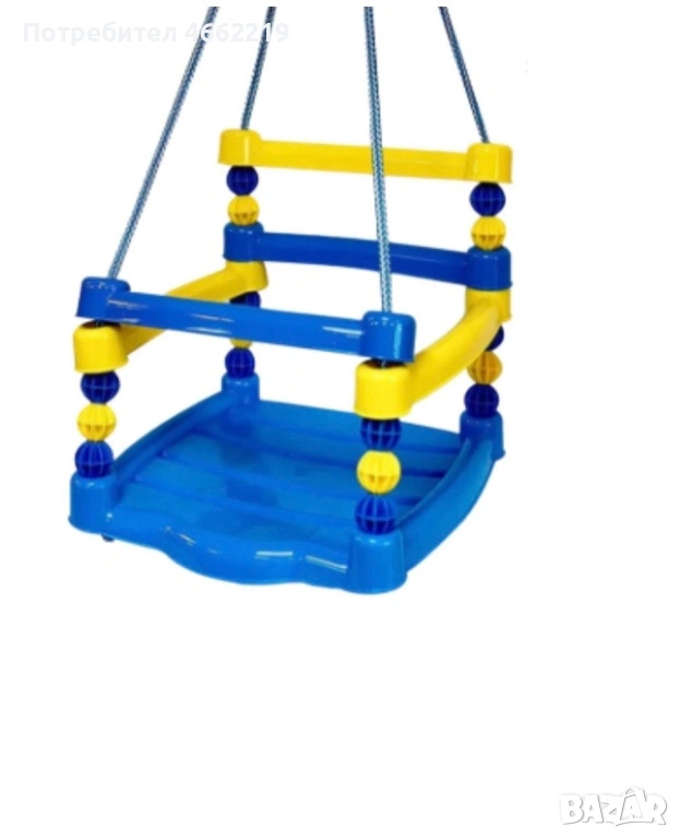 Класическа детска люлка, изработена от здрава и безопасна пластмаса, проектирана специално за по-големи деца над 3-годишна възраст. Люлката е лека, с удобна форма и подходяща както за външен, така и за вътрешен монтаж. Подходяща е за игра в двора, градината или детската стая. Размери на люлката: 34 x 34 x 34 см; Размери на опаковката: 35 x 34 x 10 см; Максимално натоварване: 40 кг; Диаметър на въжетата: 1 см; Материал: нетоксична пластмаса; Подходяща за деца над 3 години; Предлага се в четири цвята : Син ; Жълт; Червен;