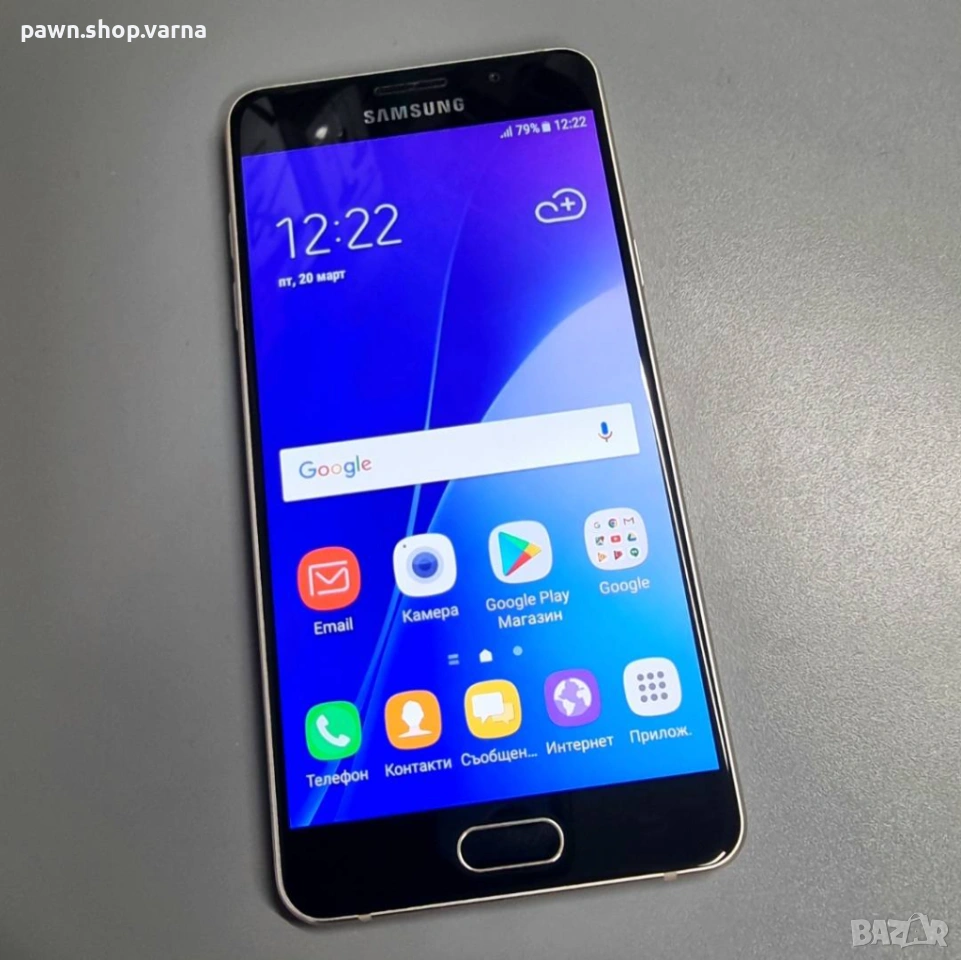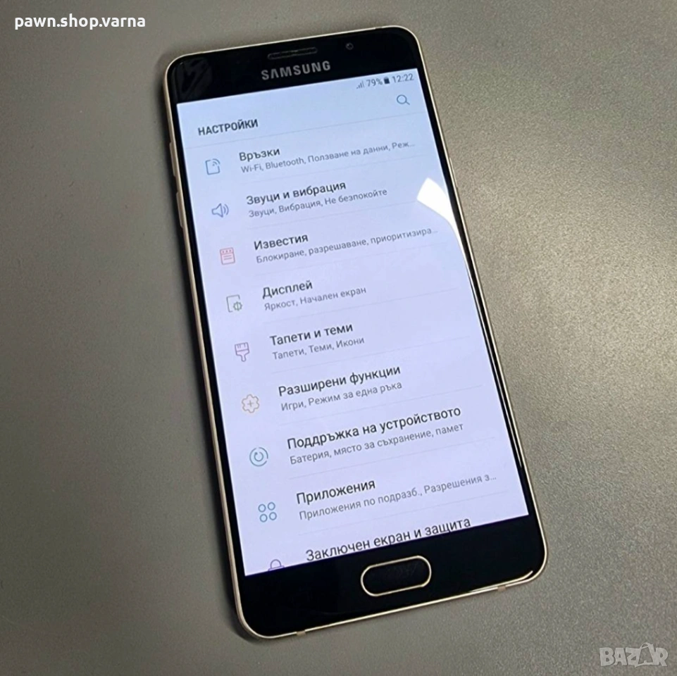 Смартфон Samsung Galaxy A5 A510F 2/16GB в добро състояние – има леки следи от употреба и дребни драскотини, но работи напълно нормално и без проблеми. Батерията държи добре.