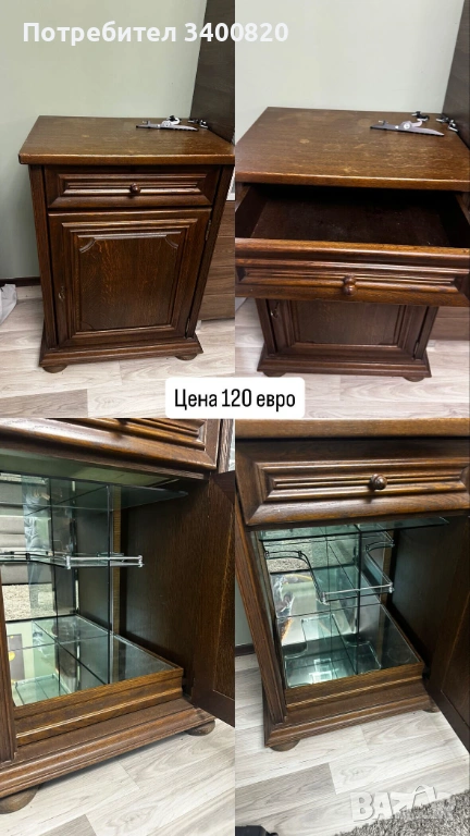 Шкаф от масивно дърво, с ключ. стъкленото отвътре се издърпва и може да се ползва като масичка. Изключително интересна находка.
