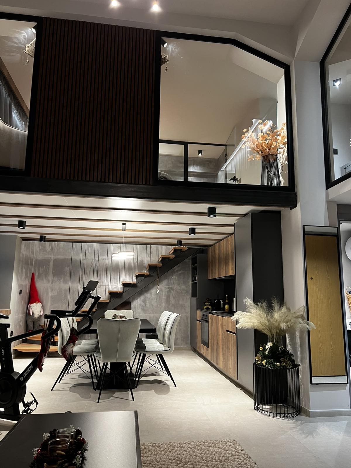 Апартаментът представлява мезонет, състоящ се от дневен тракт, трапезария и напълно оборудвана кухня с всички необходими електроуреди; баня с тоалетна за гости, а на следващото ниво е разположена напълно самостоятелната спалня със собствена баня с тоалетна и гардеробна! В цената са включени: подземно паркомясто, такса за поддръжка на комплекса, както и високоскоростен интернет и телевизия. С КЛЮЧ ЗА ИМОТА!