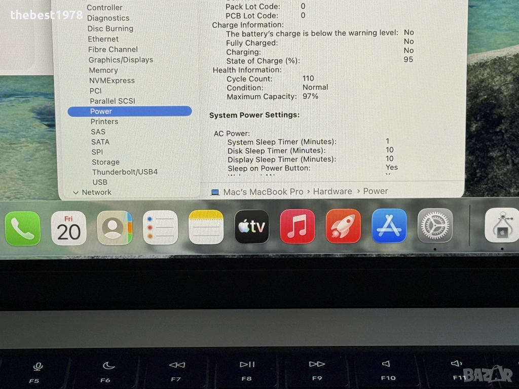 Батерията е на едва 110 цикъла и 97% здраве и държи до 20 часа.Комплект с оригинално зарядно и кабел.