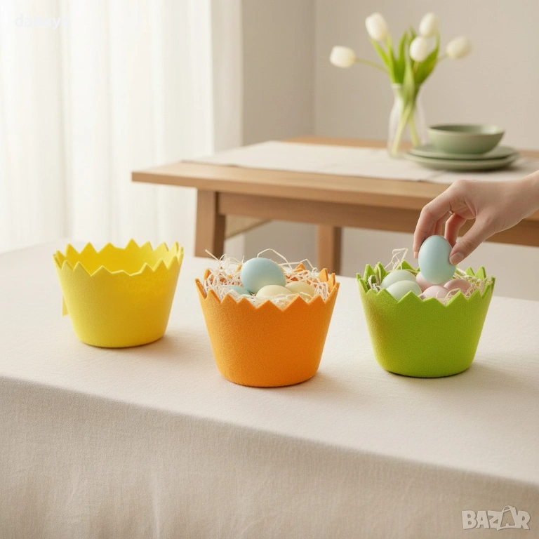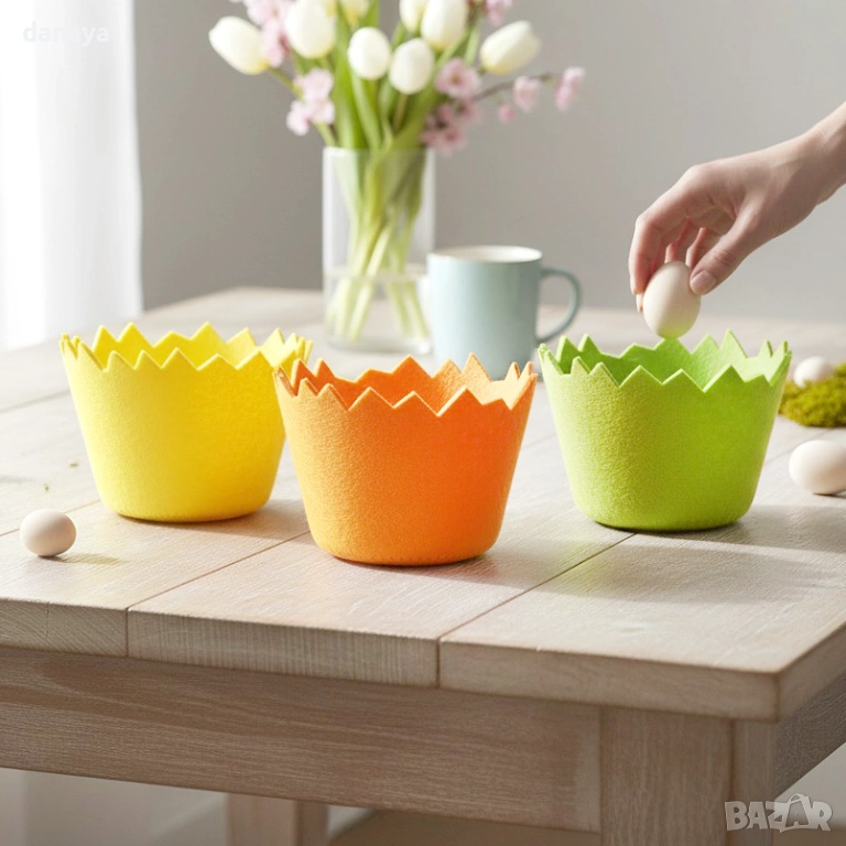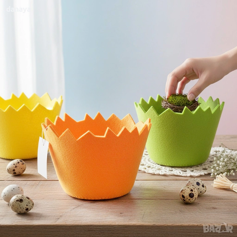 Перфектен избор за всеки, който търси великденски панер за яйца, филцова кошничка или практична великденска украса, която носи ред, цвят и празнично настроение.