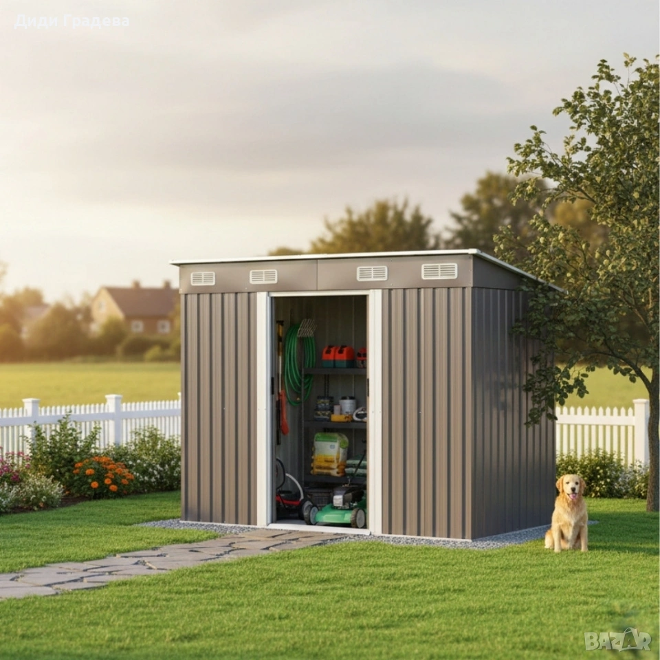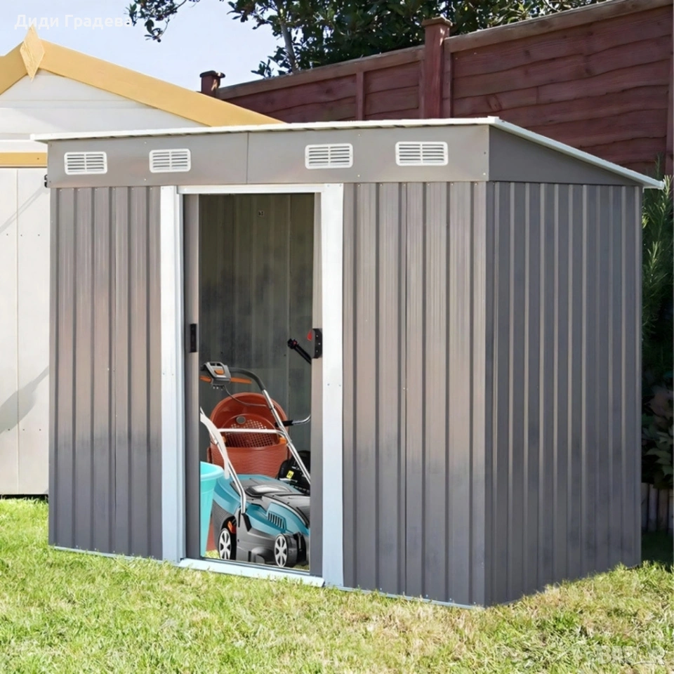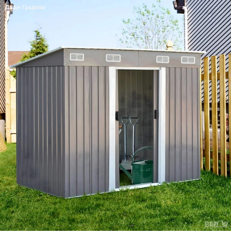 Метална градинска къща за инструменти с вентилация и заключване
