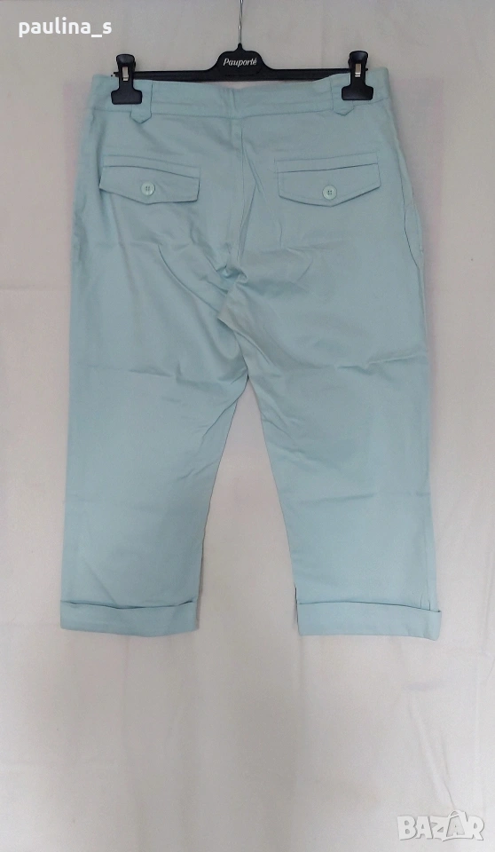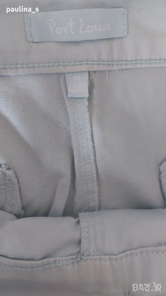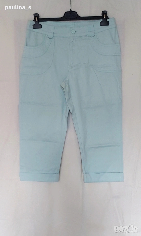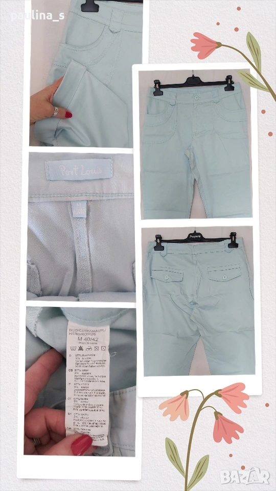 2️⃣ M / XL - Винтидж! "Port Louis". Цената е крайна, без пазарлъци 12 евро. Еластични памучни бермуди с маншет. Цветът е светло син, тюркоазен. Моделът е спортно - елегантен с двойни украсителни тегели. Материята е памук и ликра, много еластична и покрива няколко размера, посочени са, една бройка, като нови.