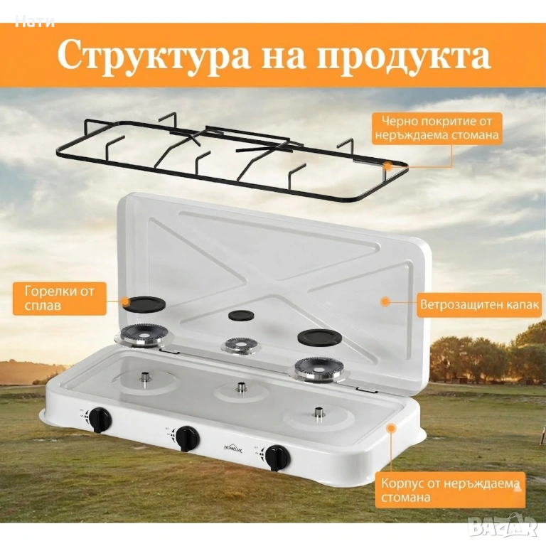 Газов къмпинг котлон с 3 горелки, включен маркуч 1.5м и регулатор 50mbar, снимка 1 - Котлони - 53912737 Газов къмпинг котлон с 3 горелки, включен маркуч 1.5м и регулатор 50mbar, снимка 2 - Котлони - 53912737 Газов къмпинг котлон с 3 горелки, включен маркуч 1.5м и регулатор 50mbar, снимка 3 - Котлони - 53912737 Газов къмпинг котлон с 3 горелки, включен маркуч 1.5м и регулатор 50mbar, снимка 4 - Котлони - 53912737 Газов къмпинг котлон с 3 горелки, включен маркуч 1.5м и регулатор 50mbar, снимка 5 - Котлони - 53912737 Газов къмпинг котлон с 3 горелки, включен маркуч 1.5м и регулатор 50mbar, снимка 6 - Котлони - 53912737 Газов къмпинг котлон с 3 горелки, включен маркуч 1.5м и регулатор 50mbar, снимка 7 - Котлони - 53912737 1/7