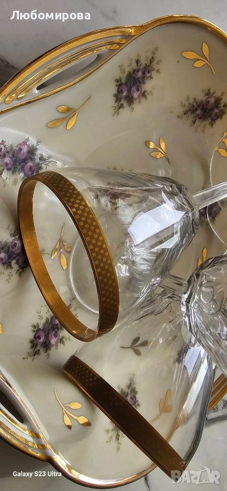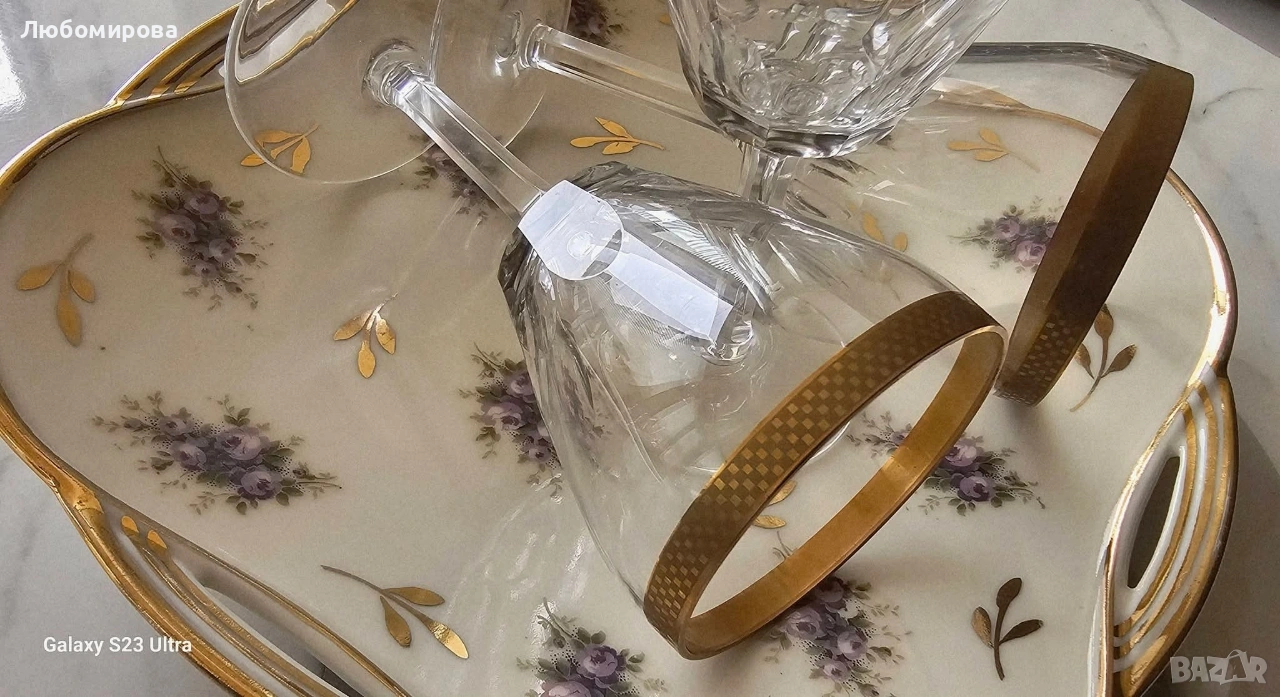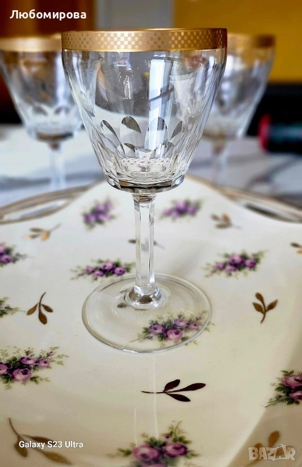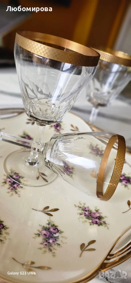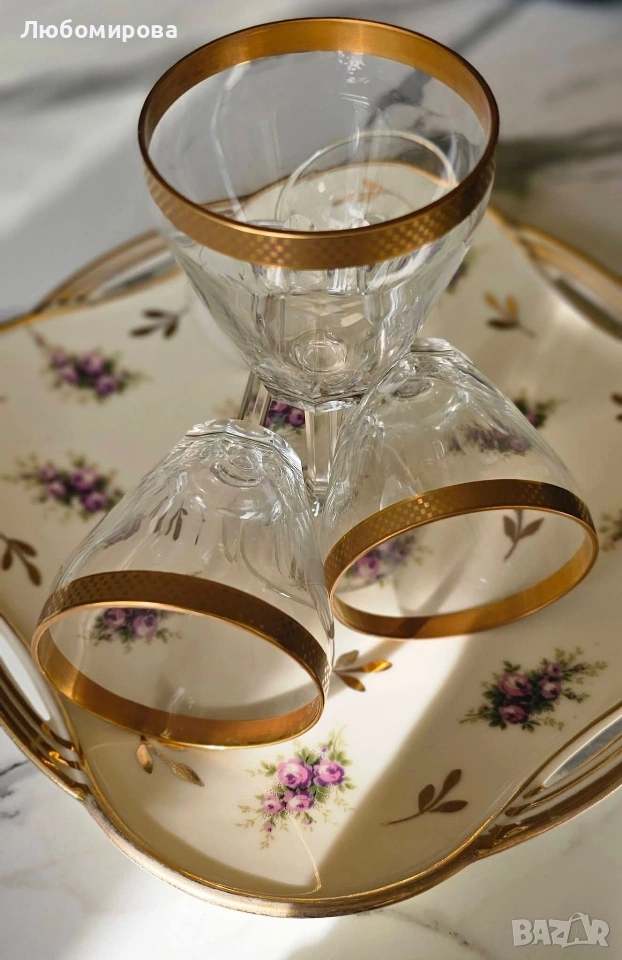 Кристални чаши на столче, с много позлата
