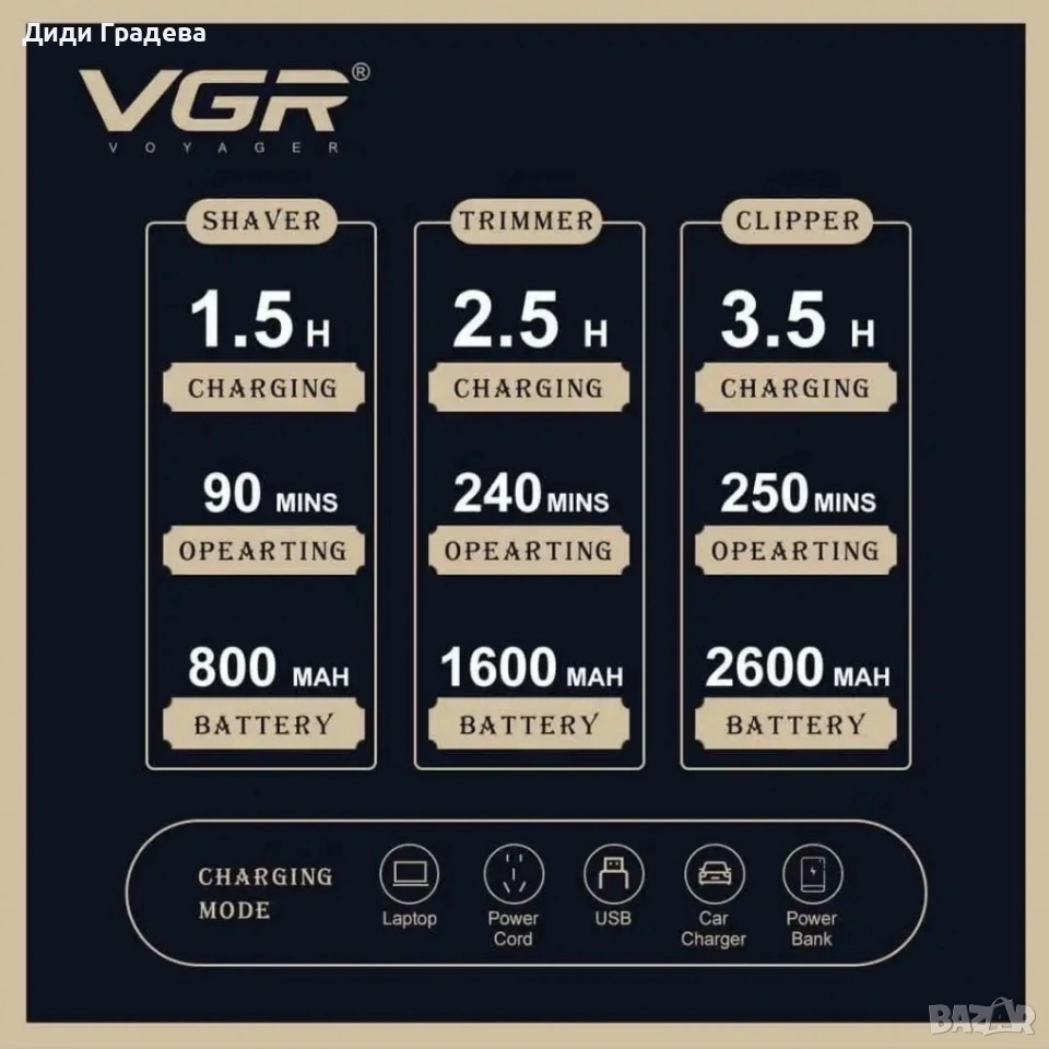 Комплект 3 в 1 VGR V-642 Машинка за подстригване, тример и самобръсначка с пълни аксесоари