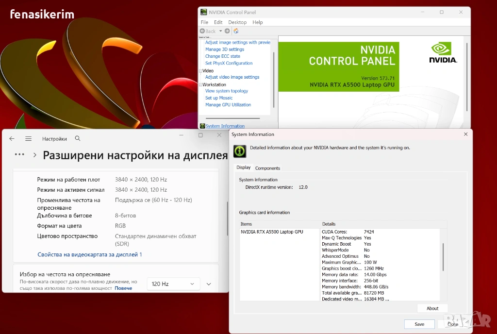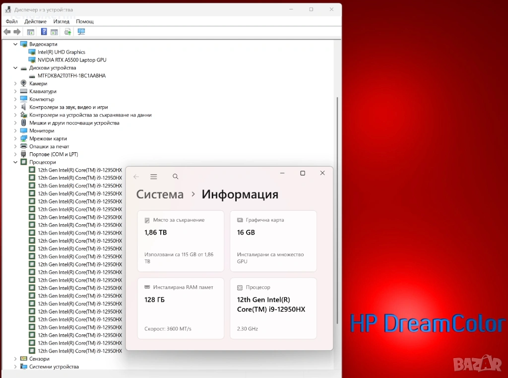 Core i9-12950HX процесор,128GB DDR5 RAM памет, 2000GB NVMe Gen 4 SSD и върховата Nvidia RTX А5500 256bit 16GB DDR6 собствена памет.