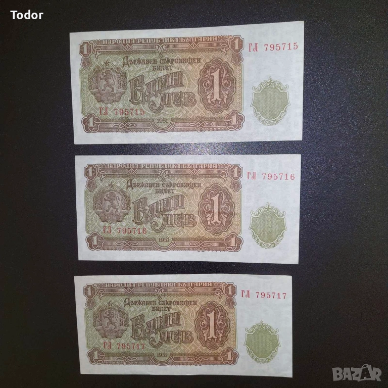 Цената е за трите броя банкноти с поредни номера, което изключително рядко се среща.