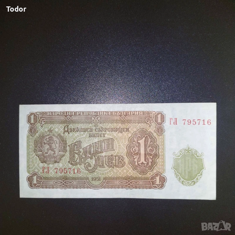 Банкнота 1 лев 1951 г.