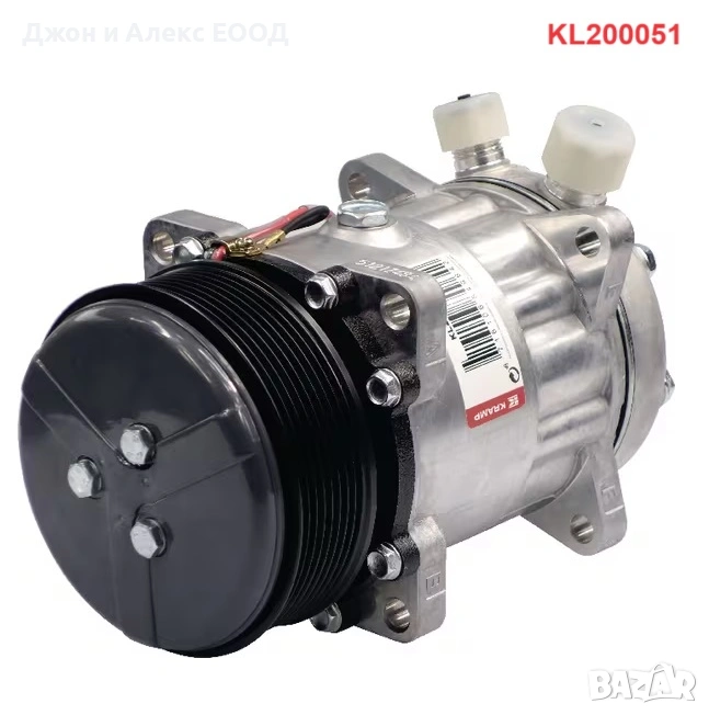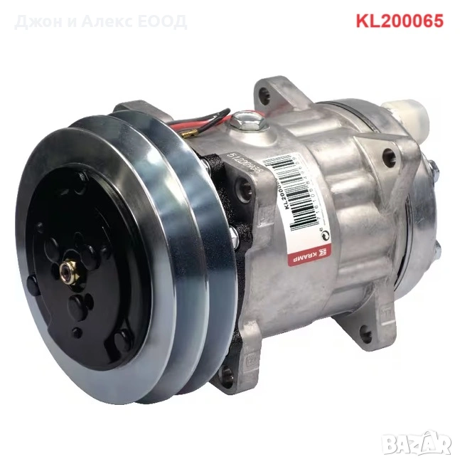 Kramp KL200065 – 12V, Тип: 7H15 (Sanden), Ø 142 / 150 mm, Шайба: 2 G - A (двуканална), Обем масло: 210 cm³, Връзка: 7/8" x 3/4", EAN: 8716106849659.Подходящ за: Deutz-Fahr 5100, 5110, 5120, 5130, 5090C, 5100C, 5110C, 5120C, Agrofarm 85, 100, 410, 420, 430, Agroplus 75, 85, 95, Agrotron K90, K100, K110, K120, Agrotron MK1, MK2, MK3, Agrotron New (80 до 200), TTV1130, TTV1145, TTV1160; Same Explorer 100, 110, Explorer³ 85, 100, 110, Iron 100, 110, 115, 120, 125, 130S, 140S, 150.7, 165.7, 180.7, Virtus 100, 110, 120, 130; Lamborghini R3 Evo 85, 100, 110, R6.100 до R6.180.7.