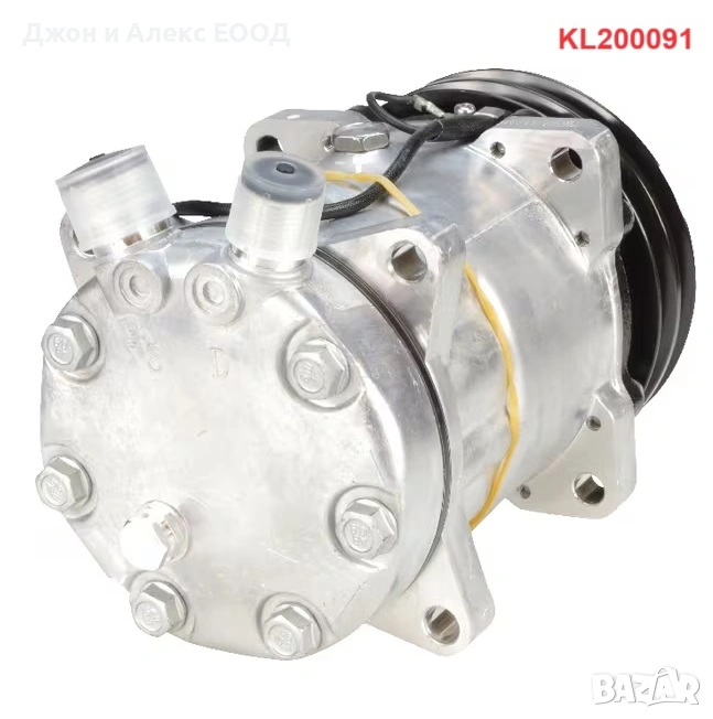 Kramp KL200091 – 12V, Тип: 7H15 (Sanden), Ø 132 mm, Шайба: A2 (двуканална), Обем масло: 207 cm³, Връзка: Vertical 3/4x7/8, EAN: 8719607167574.Подходящ за: Valtra / Valmet 600, 700, 700R, 800, 800E, 900, 900E, 6000, 6100, 6200, 6250HI, 6300, 6350HI, 6400, 6550HI, 6600, 6600E, 6650HI, 6750HI, 6800, 6800E, 6850HI, 6900, 8000, 8050, 8050E, 8050HI, 8100, 8100E, 8150, 8150E, 8150HI, 8200, 8200E, 8350HI, 8400, 8400E, 8450, 8450E, 8450HI, 8550, 8550E, 8550HI, 8750, 8750E, 8950HI, A65, A75, A75N, A85, A85N, A95, A95N, C90, C100, C110, C120, C120E, C130, C150, M120, M120E, M130, M150, N91C, N91H, N101C, N101H, N111C, N111EH, N111ELS, N111H, N121H, N121LS, N122D, N122V, N141H, N141LS, N142D, N142V, T120, T120C, T120CH, T121C, T121H, T130, T130C, T130CH, T131C, T131H, T132D, T132V, T140E, T140EC, T140ECH, T150, T150C, T150CH, T151EH, T151ELS, T152D, T152V, T160, T160C, T160CH, T161C, T161H, T161LS, T162D, T162EV, T170, T170C, T170CH, T171C, T171H, T171LS, T172D, T172V, T180, T182D, T182V, T190, T191H, T191LS, T202D, T202V, X100, X110, X120, XM130, XM150.