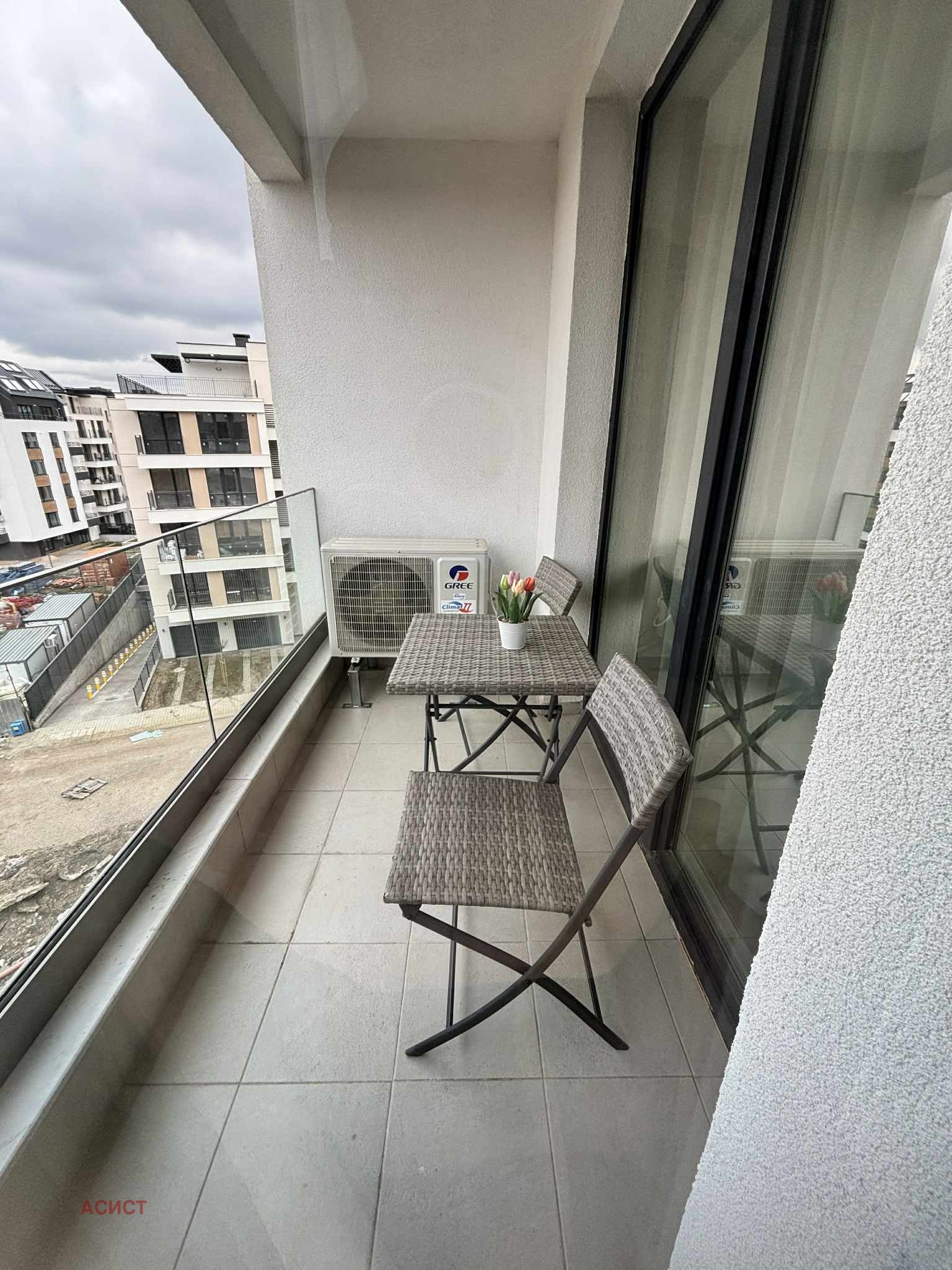 Жилището е в затворен комплекс с охрана и видеонаблюдение. Изложение: юг/изток. Отоплението е на газ и климатици.