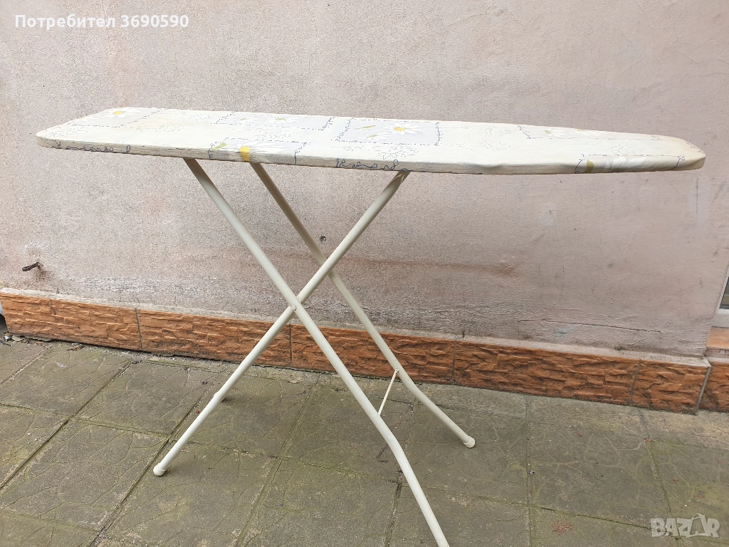 Маса за гладене, здрава и функционална, със следи от употреба.