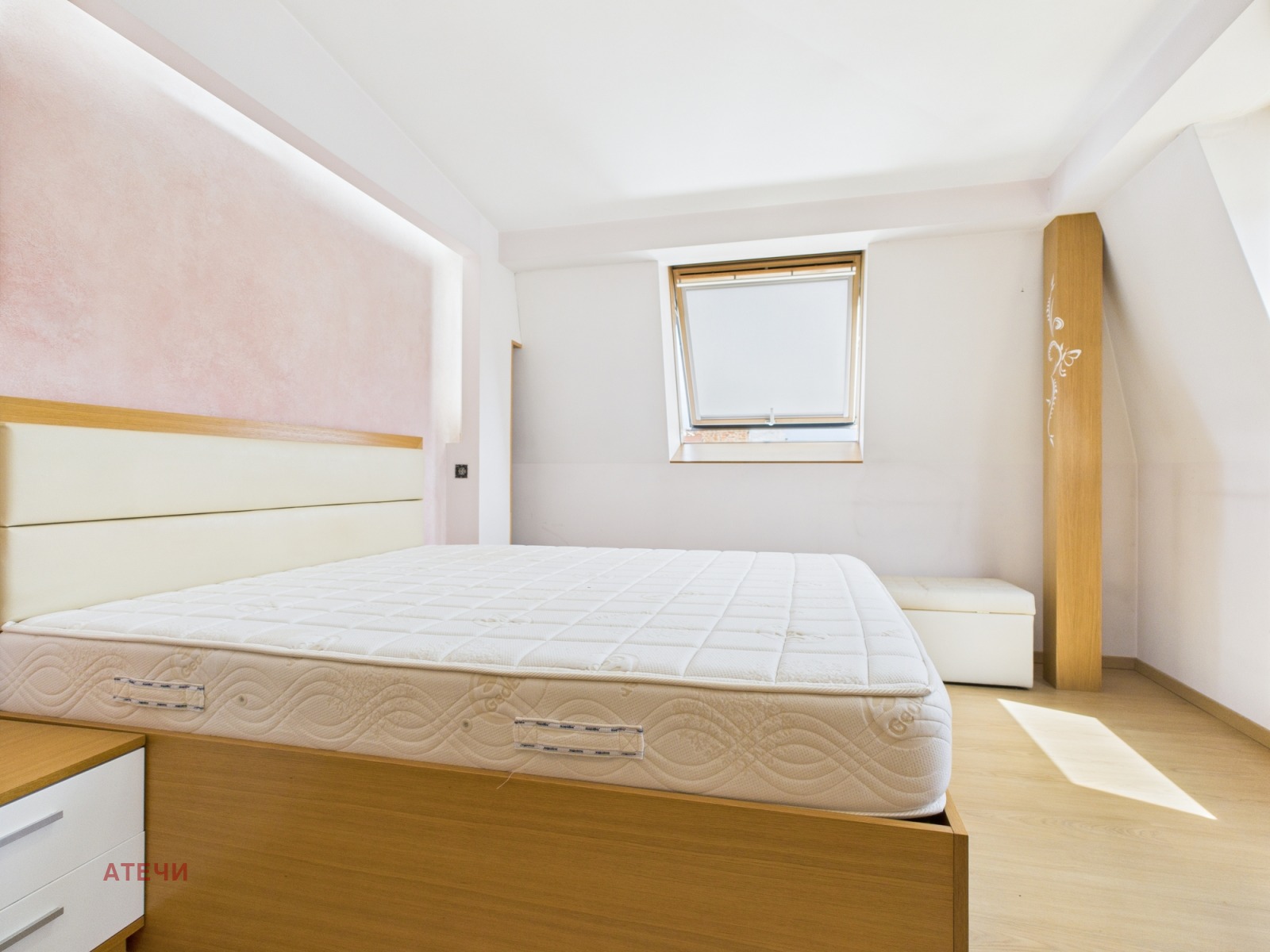 Второ ниво: впечатляваща просторна спалня с възможност за обособяване на кабинет или дрешник.