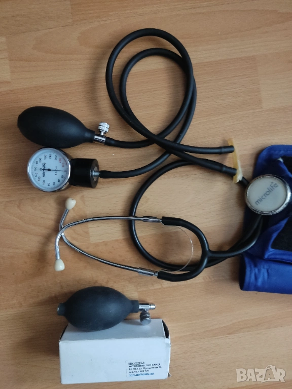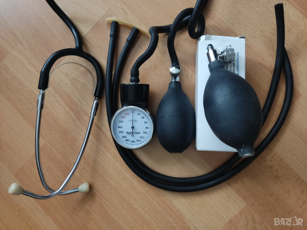 2. 2бр.нови помпички, нов манометър, слушалки и маркучи за механичен апарат за кръвно.