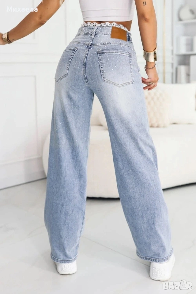 Дамски дънки с дантела и камъчета - 33€