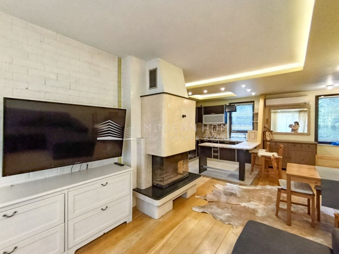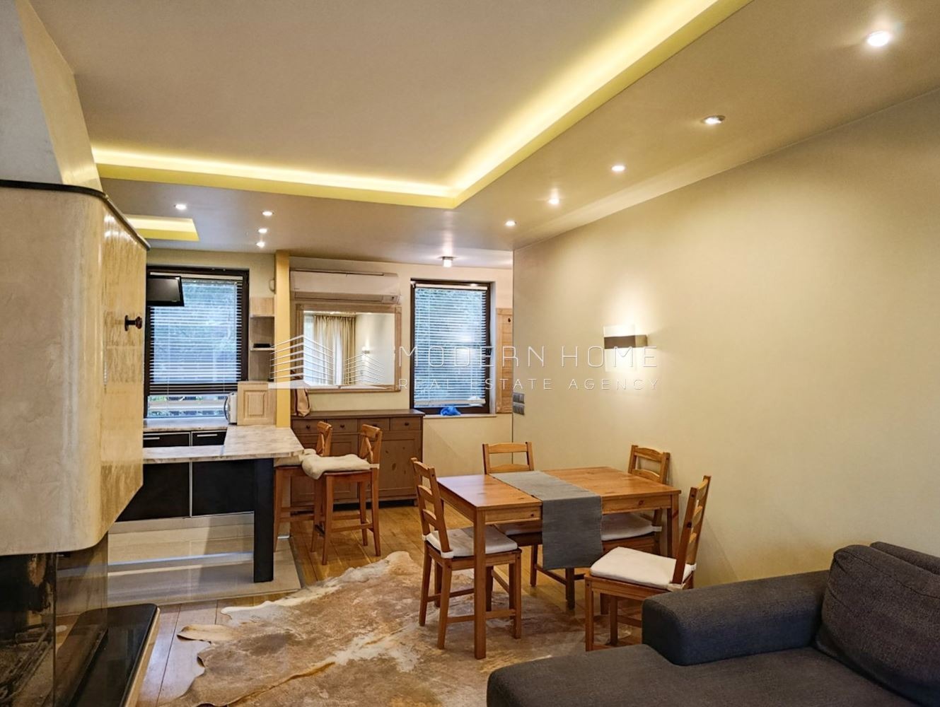 - Разпределение: функционална дневна зона с място за кухня и трапезария и камина, две самостоятелни спални, две бани с тоалетна, един удобен балкон и излаз към поддържан двор от 30 кв.м чудесен за сутрешно кафе, кът за релакс или малка градинка.
