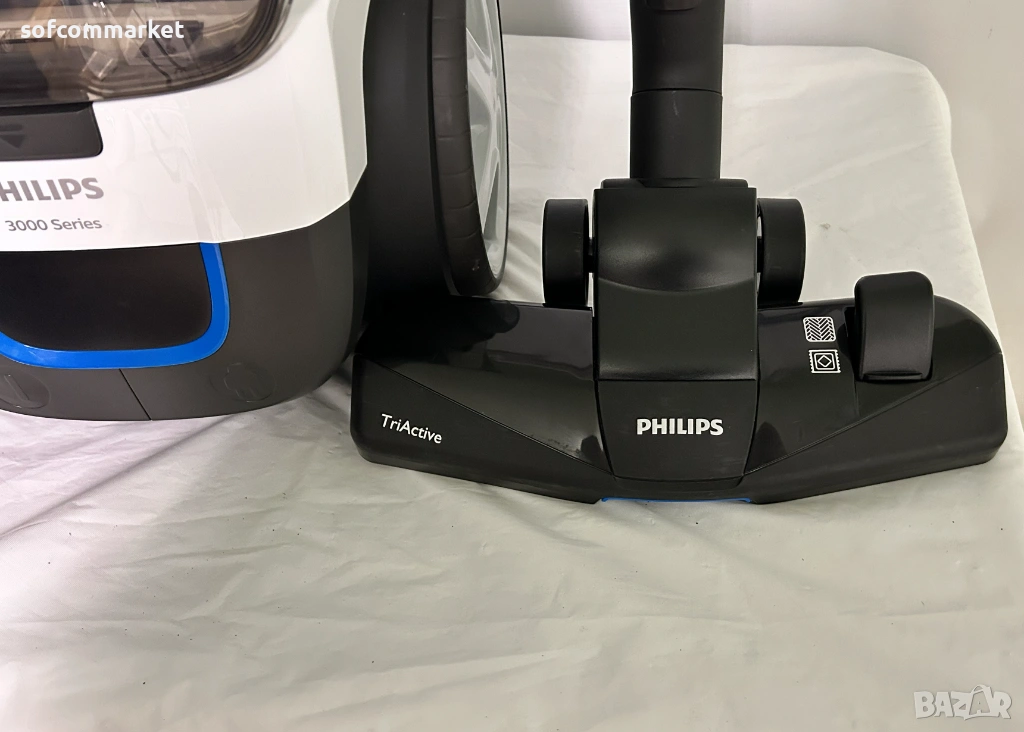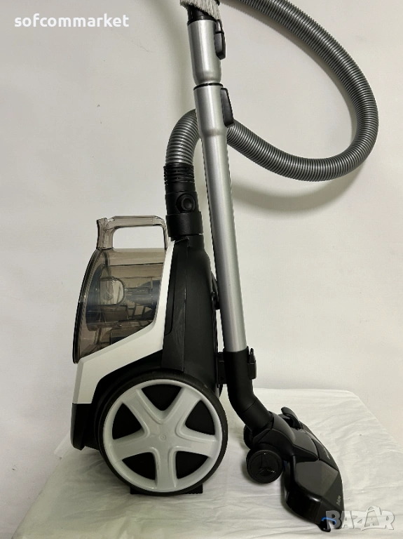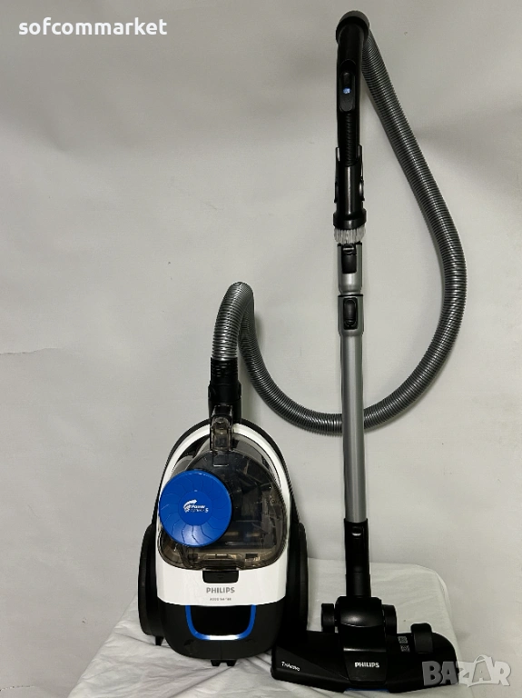 Philips PowerPro Compact FC9332/09 е компактна прахосмукачка без торбичка от серия 3000, която съчетава висока мощност на засмукване с енергийна ефективност. Тя е отличен избор за малки апартаменти и хора с алергии поради своята усъвършенствана филтрация и хигиеничен дизайн. Уредът е в отлично състояние, работи безупречно и осигурява страхотно засмукване на всякакви повърхности.
