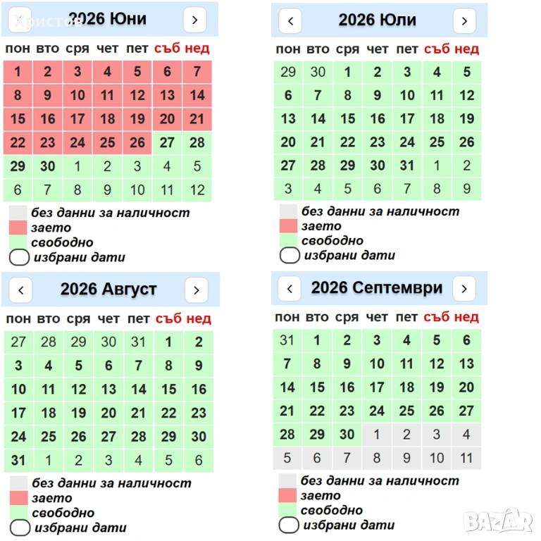 Свободен за нощувки от 27.06.2026г.
