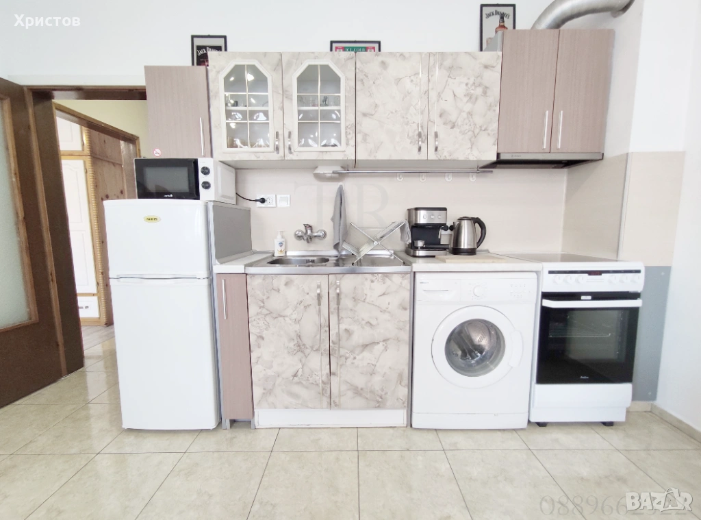 Всички ел. уреди - 2 климатика, пералня, хладилник, готварска печка, аспиратор, микровълнова фурна, кафе машина, електрическа кана, ютия, сешоар, вентилатор, телевизор.